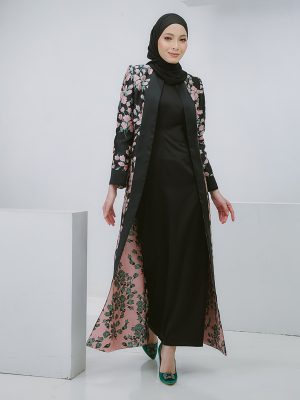 A cardigan abaya that boasts rich complementing colours. An intricate lace lined with satin gives this piece its structure. It is lightweight and flowy adding to its grace. The intentional puff sleeves and broad panelling was added to enhance the tapestry beauty. The inner and sash is optional for this piece.